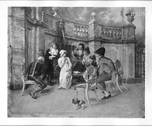 Bring the timeless beauty of Jeno Kemendy's 5 cavaliers and a lady into your home with a handmade oil painting reproduction. Carefully recreated on canvas by skilled artists using traditional techniques, this piece captures the delicate brushwork, subtle light, and vibrant color of the original masterpiece. With museum-level quality and rich texture, it brings elegance and artistic depth to any space. Enjoy free shipping and make this masterpiece a part of your personal collection.