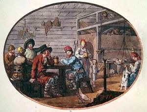 Gipsy Shacks with Woman in Red Scarf 1940s