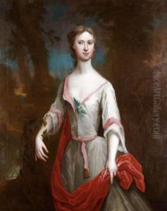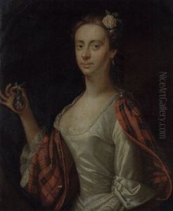 Portrait Of A Lady, Believed To Be Jenny (jean) Cameron, Half-length, In A White Dress And Tartan Wrap, Holding A Miniature Of Bonnie Prince Charlie...