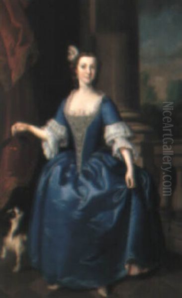Portrait Of A Lady In A Blue Dress, A Spaniel Beside Her