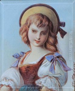 A Lady With Powdered Hair, Wearing White Bonnet With Green Trimmed Bow And White Dress