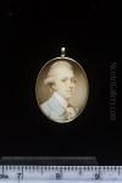 A Gentleman, Wearing Powder-blue Coat, White Waistcoat With Gold Embroidered Border, Lace Frilled Shirt And Stock, His Hair Powdered And Worn
