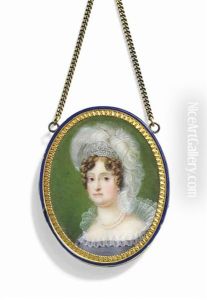 Princess Maria Amalia Of Saxony (1757-1831), In Lavender Dress With High Standing Lace Collar, Wearing Pearls And White Ostrich Plumes In Her Curled Brown Hair