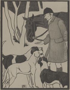 A Huntsman And Hound Chasing Bird Up In A Wooded Copse
