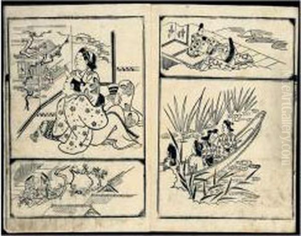 Genji Ukiyo Fukusa-e. Le Roman De Genji En Peinture A Fukusa (selon Les Modes De La Vie Frivole Moderne) Oil Painting by Jihei Sugimura
