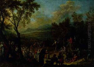 Weite Bewaldete Landschaft Mit Der Predigt Johannes Des Taufers