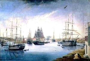 View from the Mahon Door from the Fonduco with Various Foreign Frigates