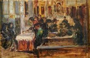 Bring the timeless beauty of Joaquin Miro's ""interior De Iglesia"" into your home with a handmade oil painting reproduction. Carefully recreated on canvas by skilled artists using traditional techniques, this piece captures the delicate brushwork, subtle light, and vibrant color of the original masterpiece. With museum-level quality and rich texture, it brings elegance and artistic depth to any space. Enjoy free shipping and make this masterpiece a part of your personal collection.