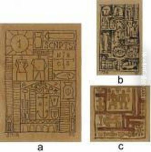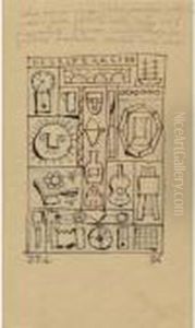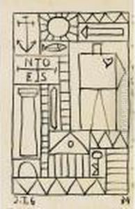 Group Of Five Drawings: Constructivo With Double Lines; Composition With Symbols; Constructive Drawing; Constructivo; Constructivo Pictograph