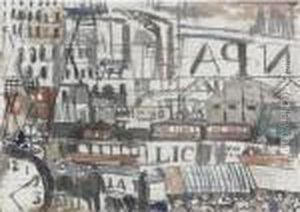 A Group Of Three Drawings: Abstract Form; Port Scene; Untitled (montevideo)