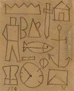 Group Of Five Drawings: Structure; Port Composition; Pintura Constructiva; Constructivo With Mask And Fish; Constructivo With Mask