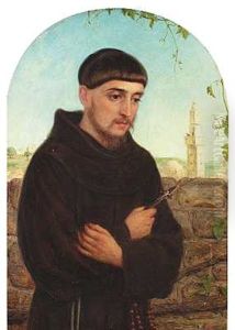 Franciscan monks in the cloister of Santa Maria in Ara Coeli