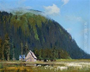 A Rocky Coastal Scene From The Faroe Islands Oil Painting by Joen Waagstein
