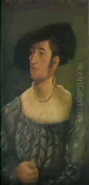 Portrait Of A Young Nobleman, Aged 25, Half Length, Wearing A Grey Tunic, A Pleated White Linen Shirt And A Velvet Hat