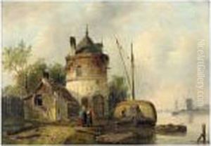 A Town Gate In Delft, The Oude Kerk Beyond