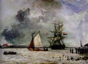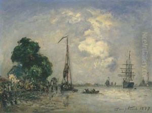 Figures On A Jetty In The Moolit Harbour Of Harfleur