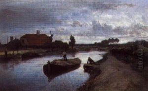 Continental Canal Landscape With Figures