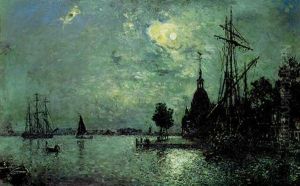 French Moonlit Harbor, Latrop (near Rotterdam)