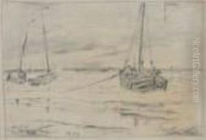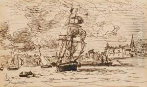 Un Bateau Deux Mats Dans Une Rade, Etude Subsidiaire De Bateau