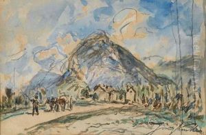 A Chalet In A Mountainous Landscape (recto); Figures On A Country Road (verso)