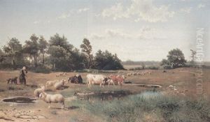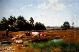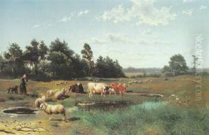 A Peasant Girl And Cattle Resting In A Landscape