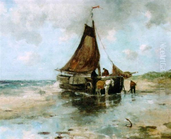 Unloading The Catch Oil Painting by Johan Frederik Cornelis Scherrewitz