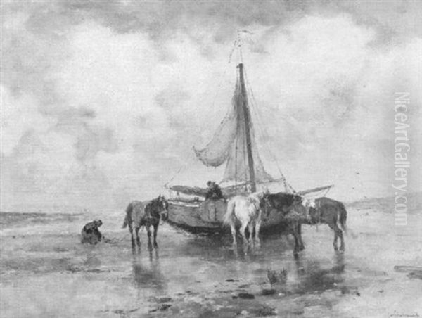 Unloading The Catch Oil Painting by Johan Frederik Cornelis Scherrewitz