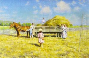 Sommartorpet - Landskap Med Barn Och Pickande Hons