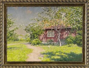 Gardsidyll Med Pickande Hons Oil Painting by Johan Fredrik Krouthen