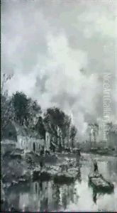 A River Landscape With A Figure In A Rowing Boat