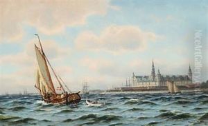 Marine With Sailing Ships Off The Coast Of Elsinore Castle