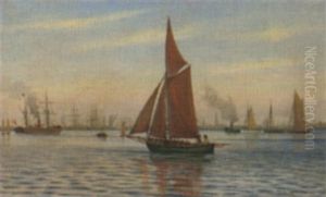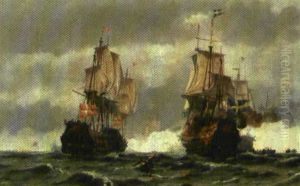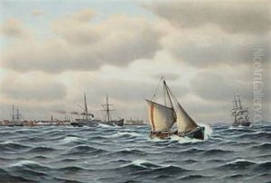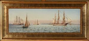Seascape With Several Sailingships Outside Copenhagen Harbour