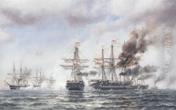 Slaget Ved Helgoland Oil Painting by Johan Jens Neumann
