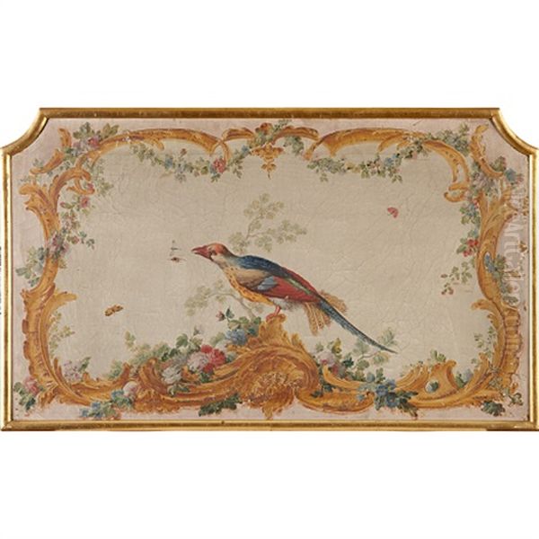 Motiv Med Fagel, Trollslanda Och Fjarilar Samt Rocailler, Rosor Och Blomstergirlanger, Ursprungligen Dorroverstycke