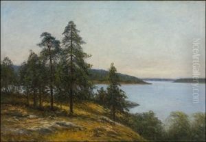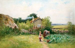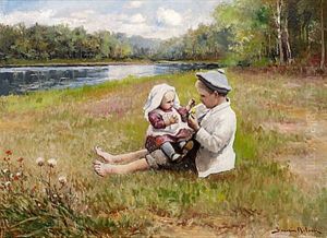 Svenskt Sommarlandskap Med Tva Smaflickor