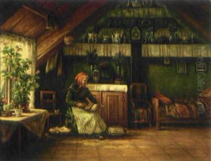 Allmogeinterior Med Kardande Kvinna