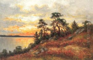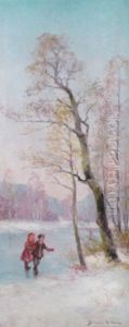 Landskap Med Trad - Vintermotiv I Aftonljus