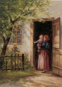 Sommarmotiv Med Mor Och Dotter Vid Gardspump - Motiv Fran Halland