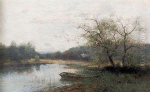 Strandlandskap Med Brygga Och Sjobod, Sommarmotiv Fran Halland