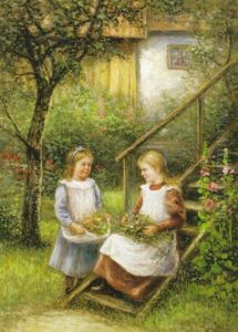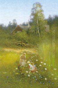 Samtal Vid Grinden - Sommarlandskap Med Tva Kvinnor