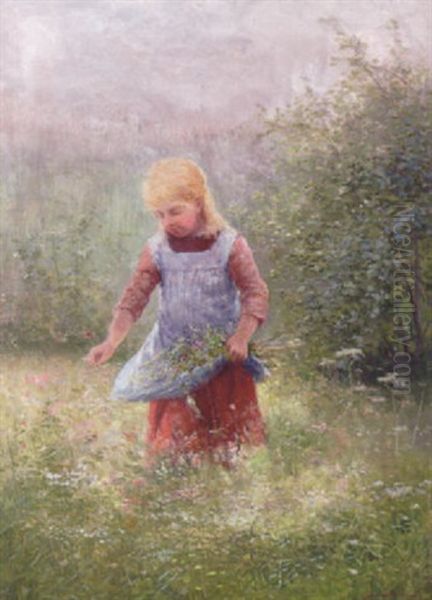 Flicka Pa Blomsterang Oil Painting by Johan Severin Nilsson