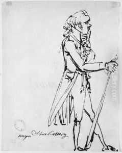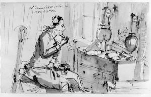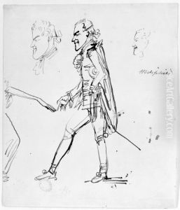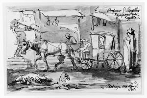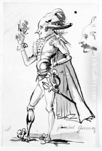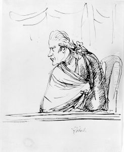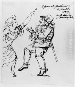 Karikatyr av general Pauli, grevinnan Delagardie och general pa Gripsholm