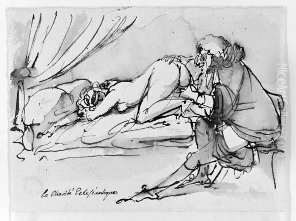 Prasten och flickan Oil Painting by Johan Tobias Sergel