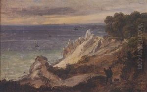 Figurstudier; to menn som fisker; pinje; felukk ved klippekyst; Mare morto