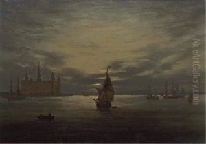 A Procession Befoe A Baroque Church In A Moonlit Harbour, A Capriccio