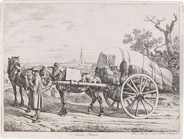 Der Kutscher Mit Den Beiden Wagenpferden. Sachsisches Fuhrwerk