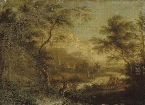 A Wooded River Landscape With Travellers On A Track