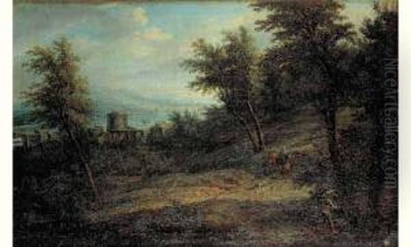 Cavaliers Dans Un Paysage Dominant Une Riviere
