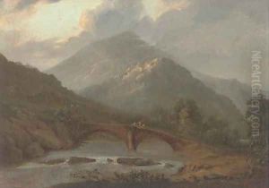 Felsige Landschaft Mit Landbevolkerung An Einer Steinernen Brucke