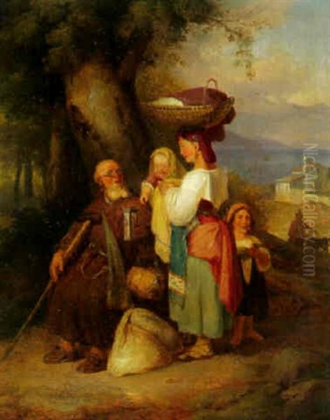 Almosen Sammelnder Monch Oil Painting by Johann Baptist Kirner